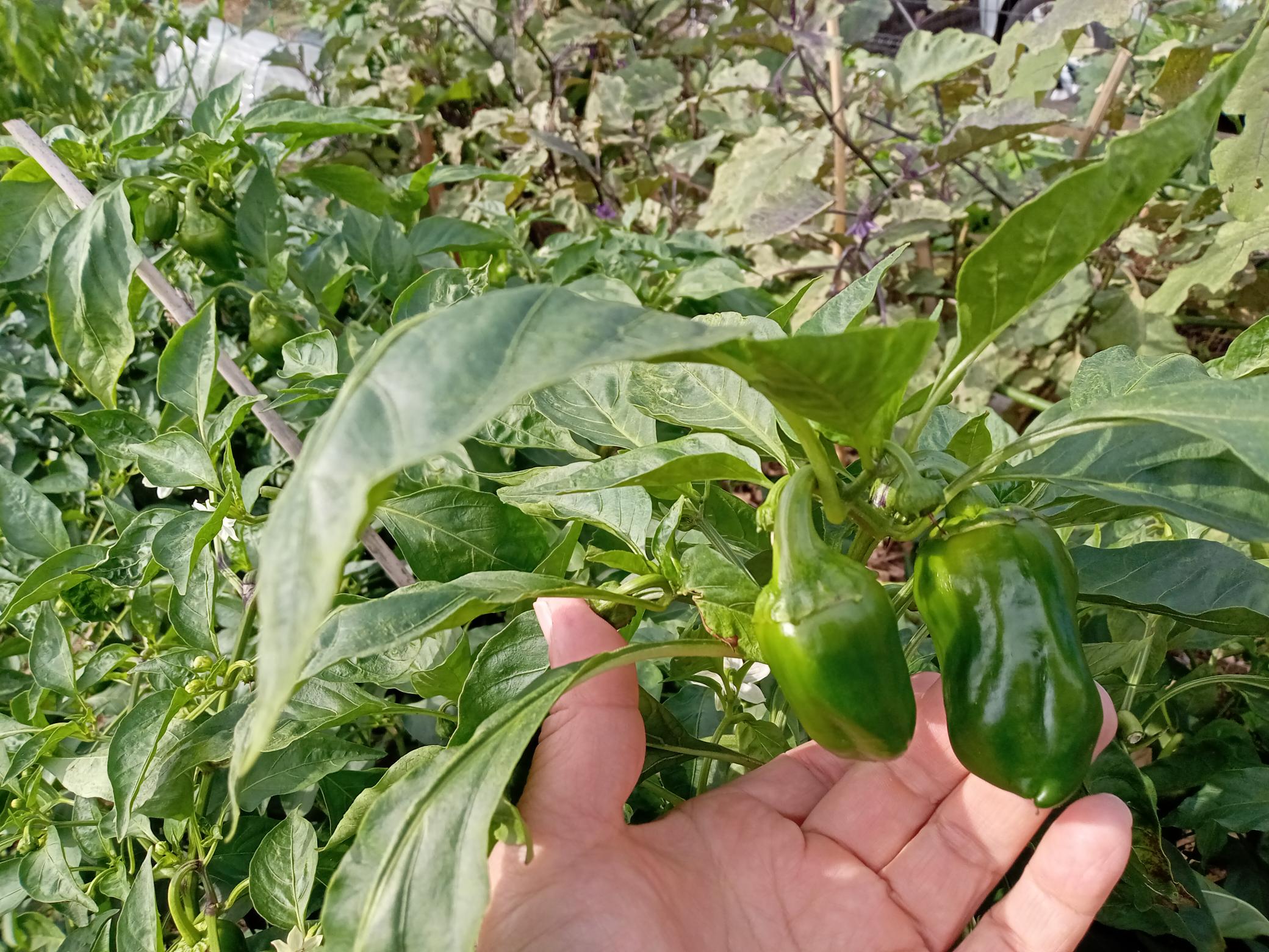 努力が実り、深まる秋の中、ナス、ピーマン、オクラはまだ実をつけ続けてくれています。